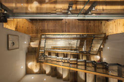 This client brought an eclectic collection of large-format art pieces, a passion for entertaining, and a taste for exotic and lively textures to this gut renovation in Manhattan's Upper West Side. We made the core of the house a 4-story wall of heavily textured tree bark, and built the common space as a two-story affair with a mezzanine overlooking a 20-ft tall media screen.